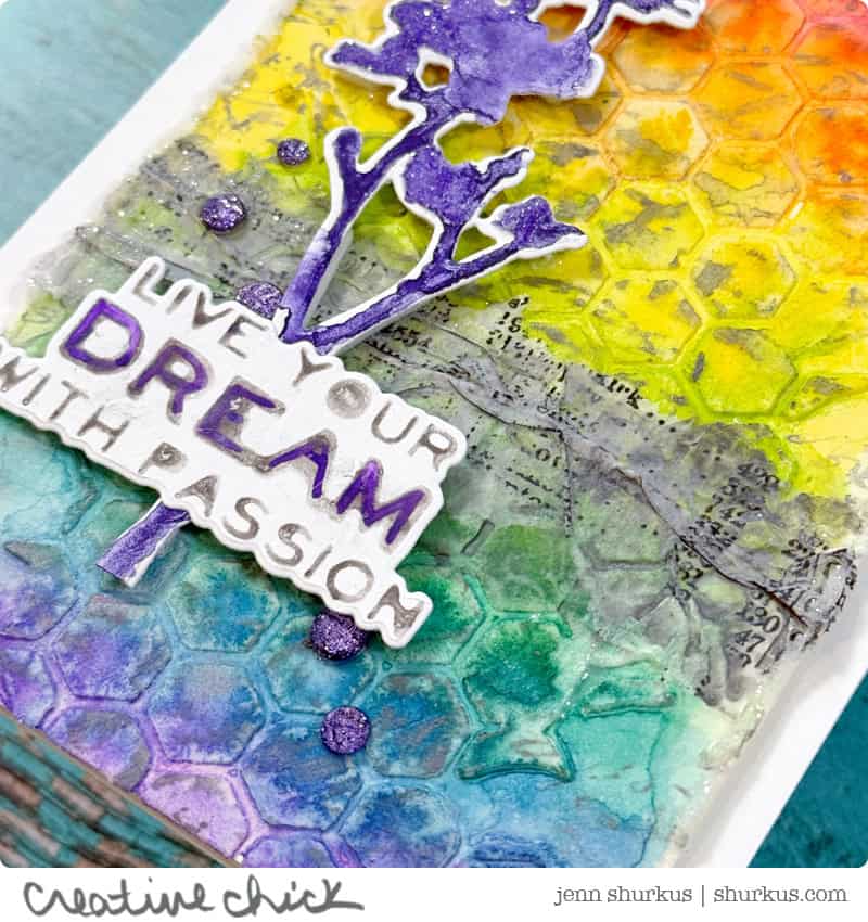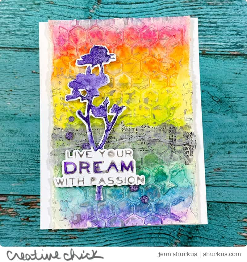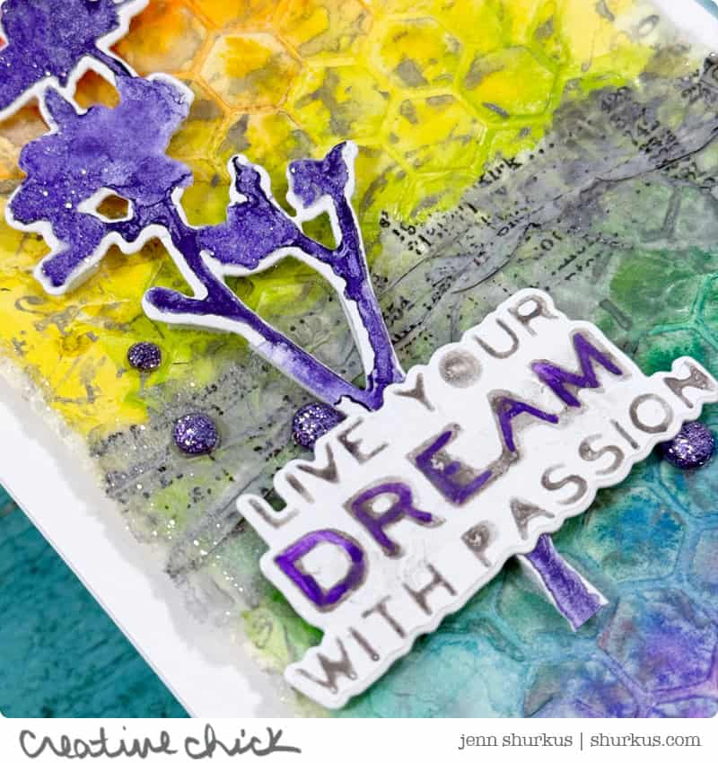 I created the background of this card with Distress Watercolor Pencils. The image and sentiments were also done with Distress Watercolor Pencils. I share many techniques with those in my Distress Techniques: Watercolor Pencils and