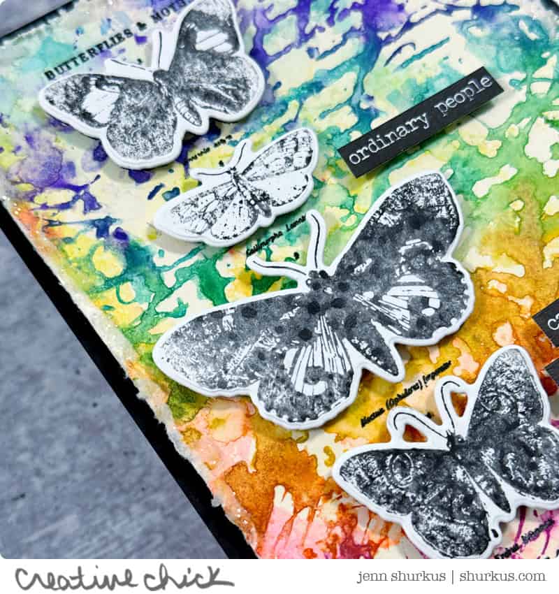 All of the elements on these cards as well as the backgrounds were created with Distress Watercolor Pencils. I share many techniques with those in my Distress Techniques: Watercolor Pencils and