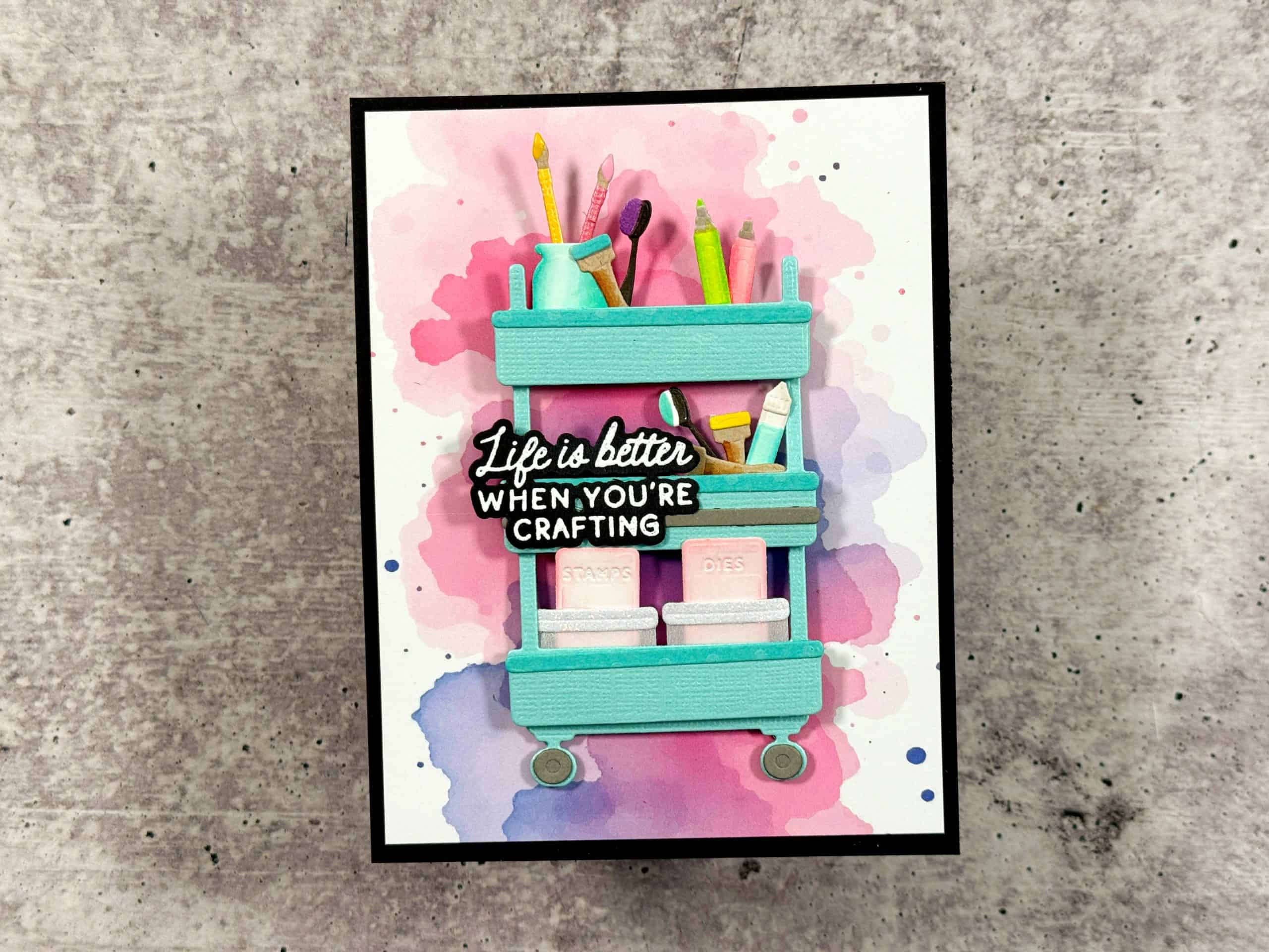 I had an absolute blast loading up my Craft Cart with all my favorite goodies from the Lovely Layers: Papercrafting Supplies set! From paint brushes and ink blending tools to stamps, dies, markers, and even a glue tube, this cart is bursting with crafty joy! 🎨✂️🖌️