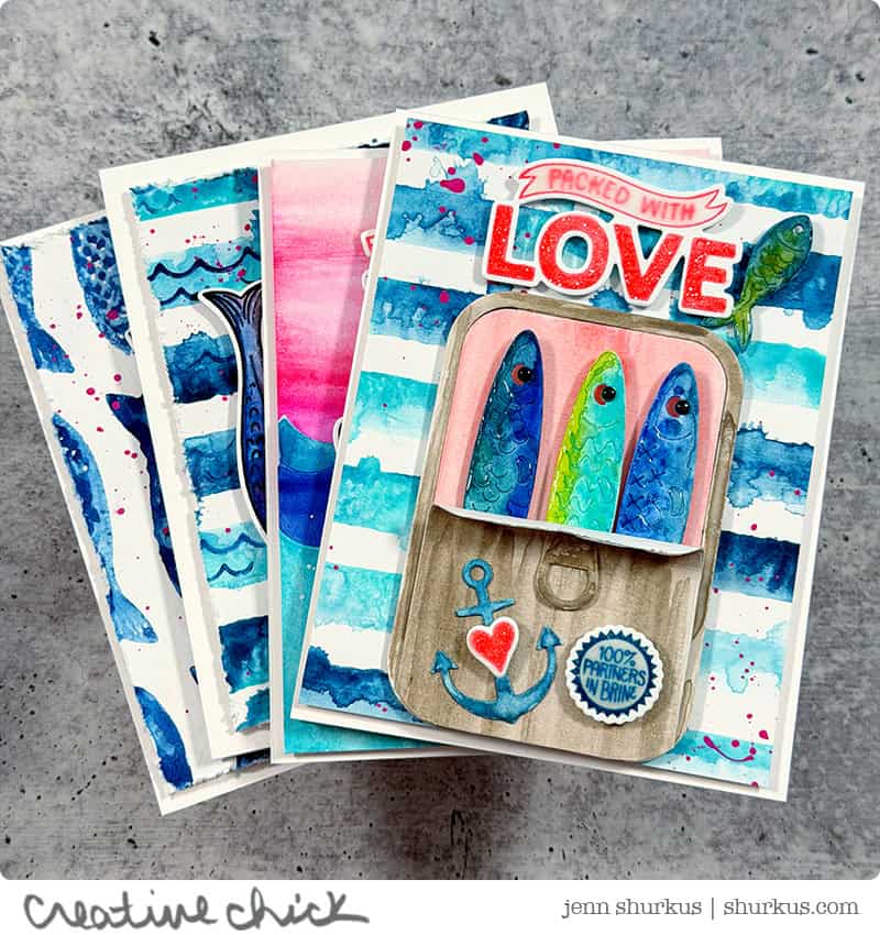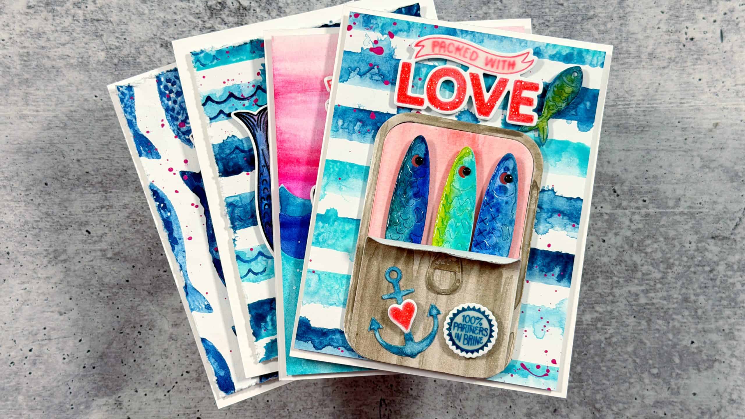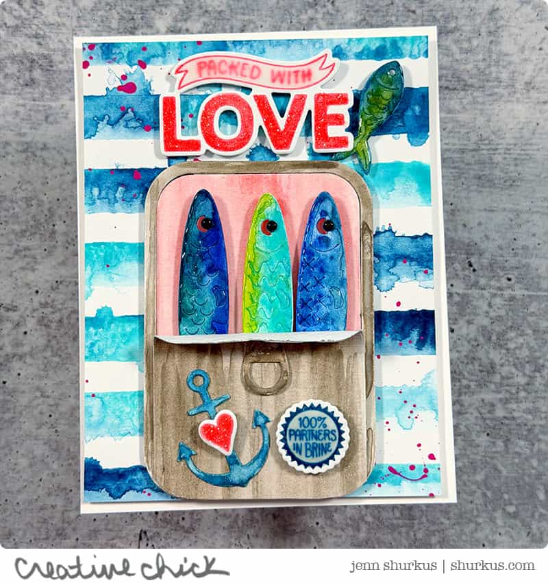 If you know me, you know I love creating cards with an ocean theme, so when Hero Arts invited me and I saw this wicked fun sardine theme, I was all in! Not only did it immediately make me smile, but it was also the perfect excuse to get a head start on a Valentine card for Chris… because he LOVES sardines 😉