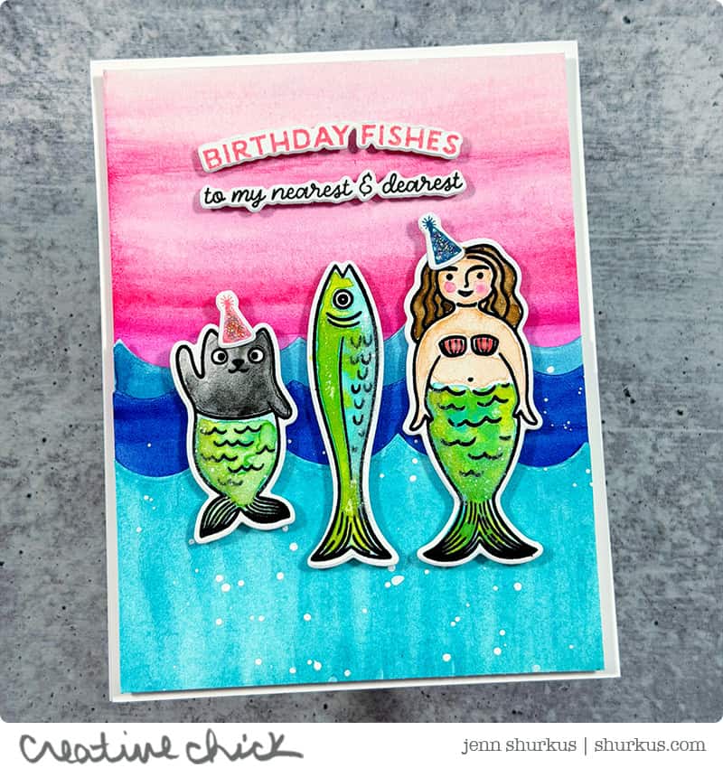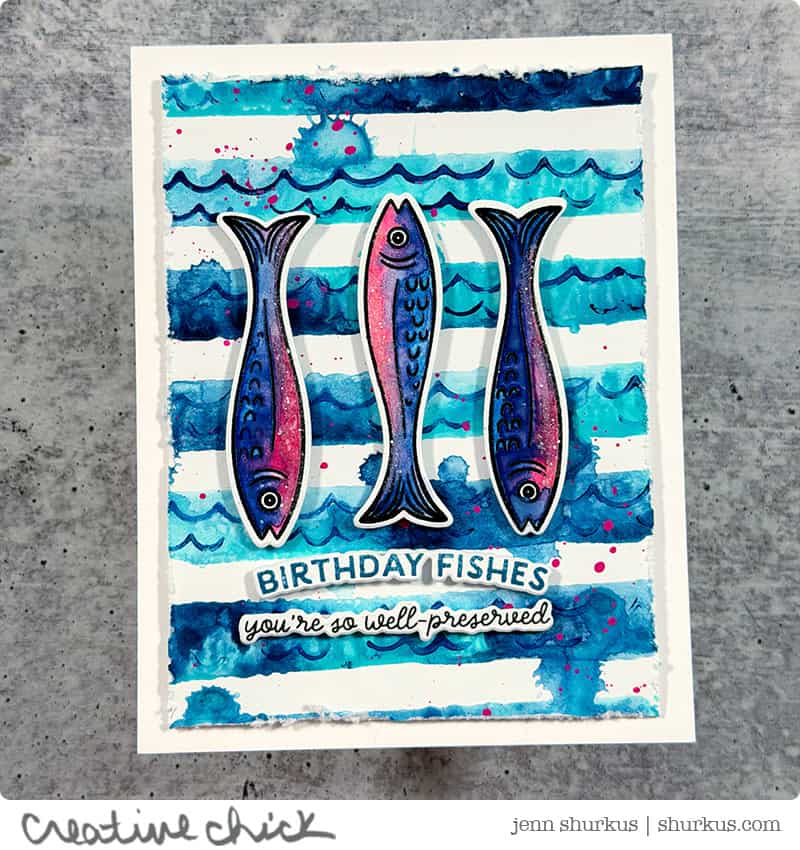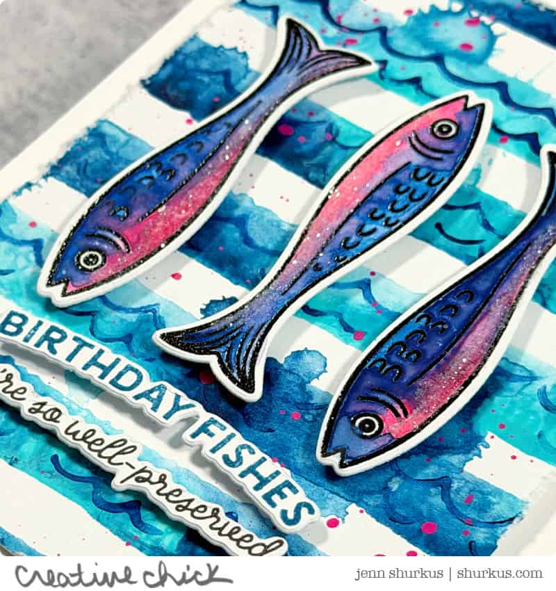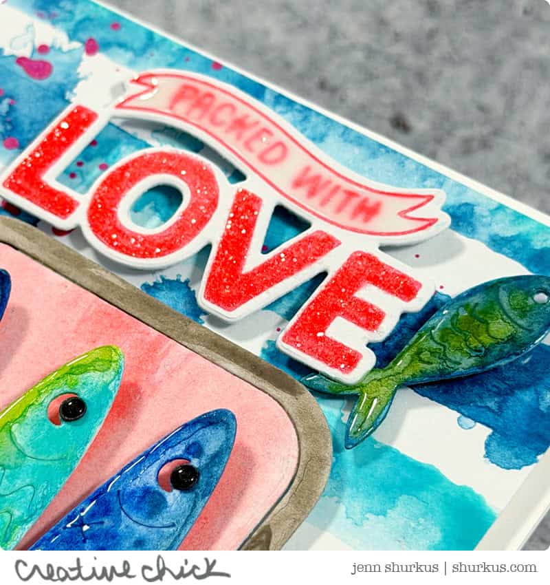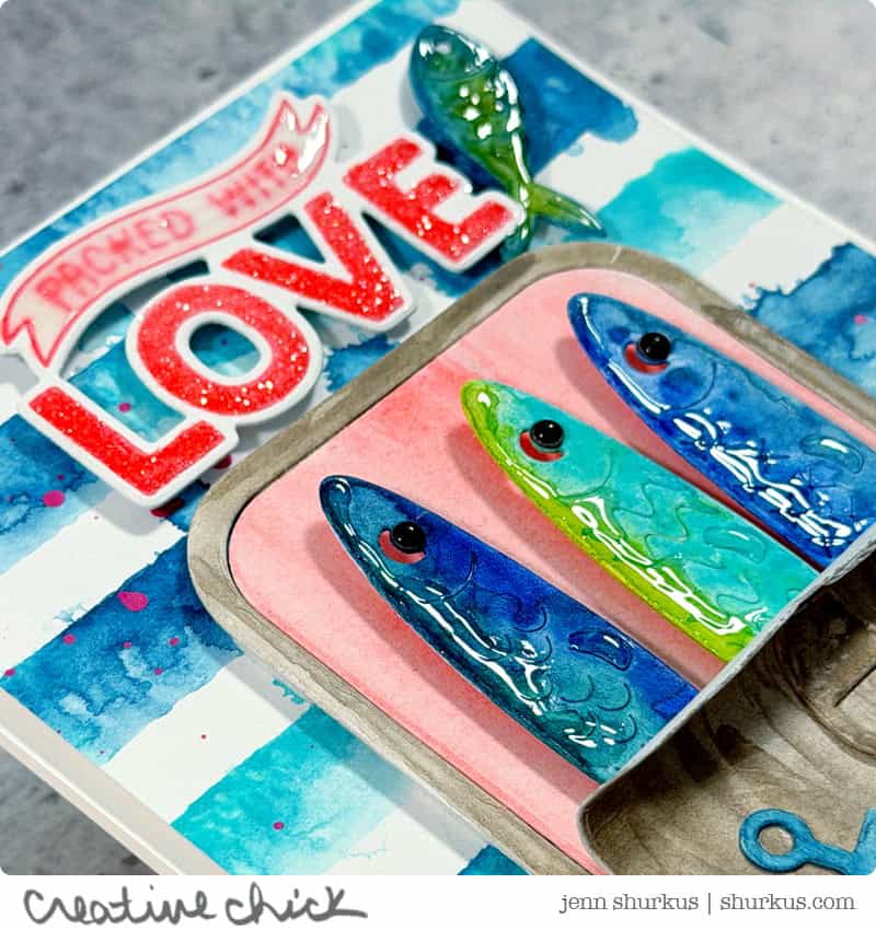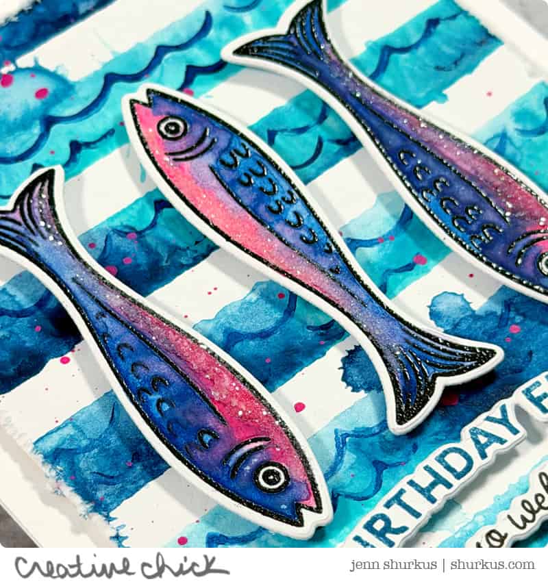 Of course, no card of mine is complete without a little sparkle! I added Distress Rock Candy Glitter for subtle shimmer and finished off a few details with Glossy Accents to give the sardines and accents a shiny, dimensional look.