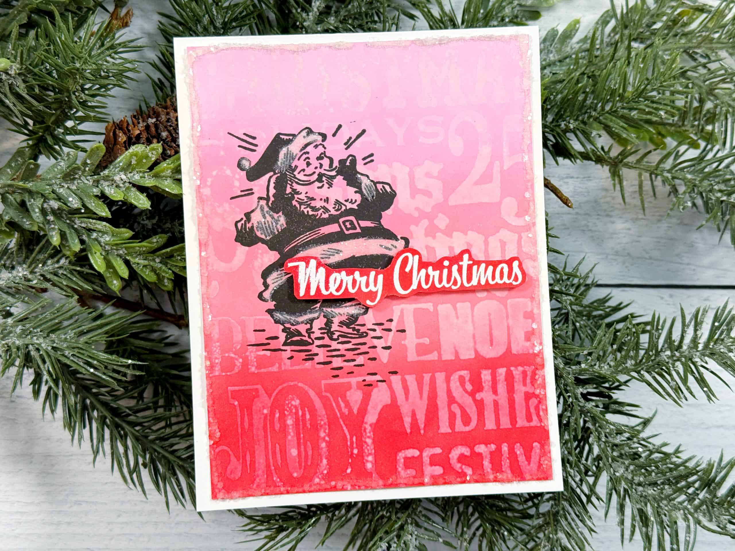 This is such a fun way to combine ink blending, water-reactive techniques, and classic holiday imagery. The result feels playful, a little vintage, and perfectly festive. 🎄✨