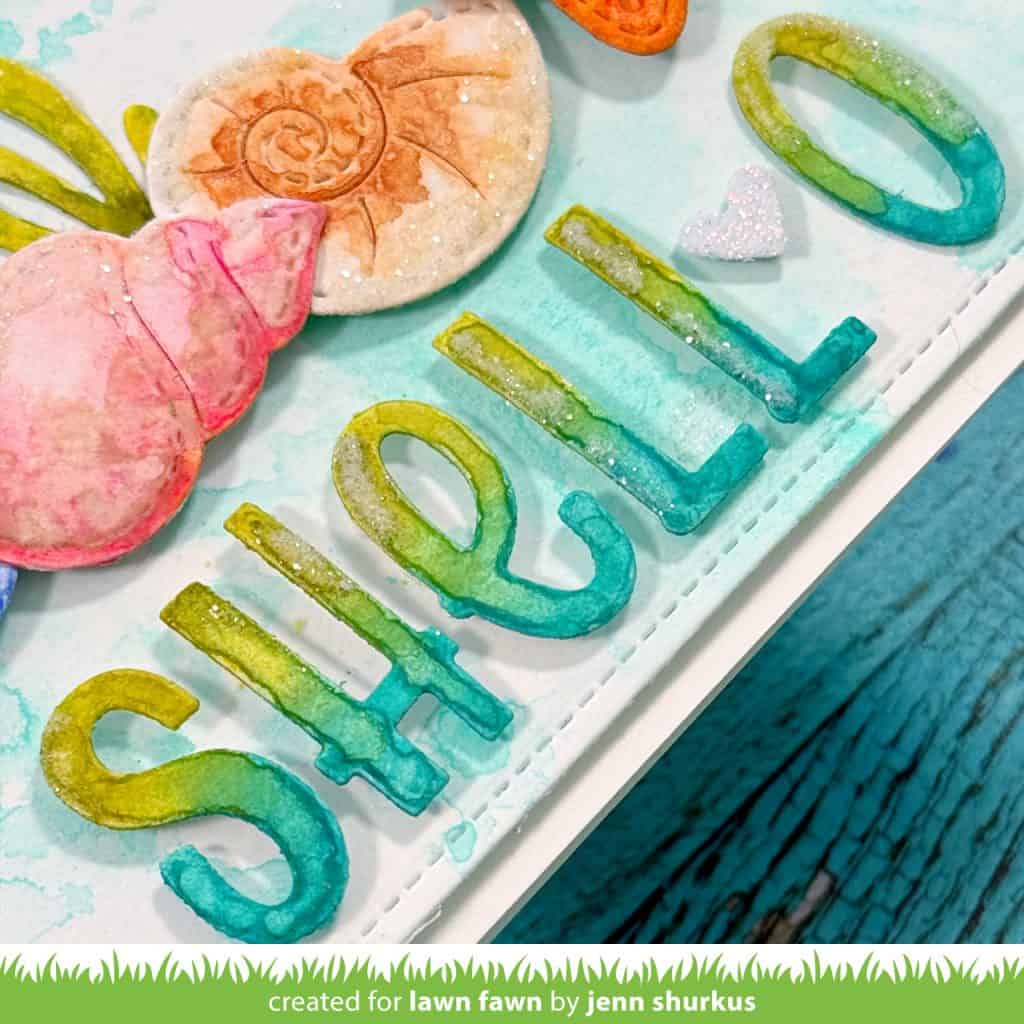 I’m back with another ocean-inspired card, this time featuring Lawn Fawn’s Stitched Seashells paired with Distress Watercolor Pencils, I seriously can’t get enough of this combo! 🌊🐚 I’ve been having so much fun experimenting with different colors and textures on these seashells.