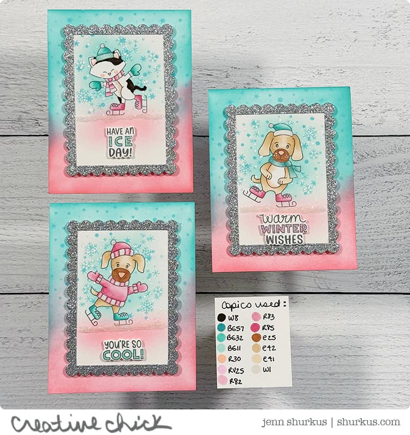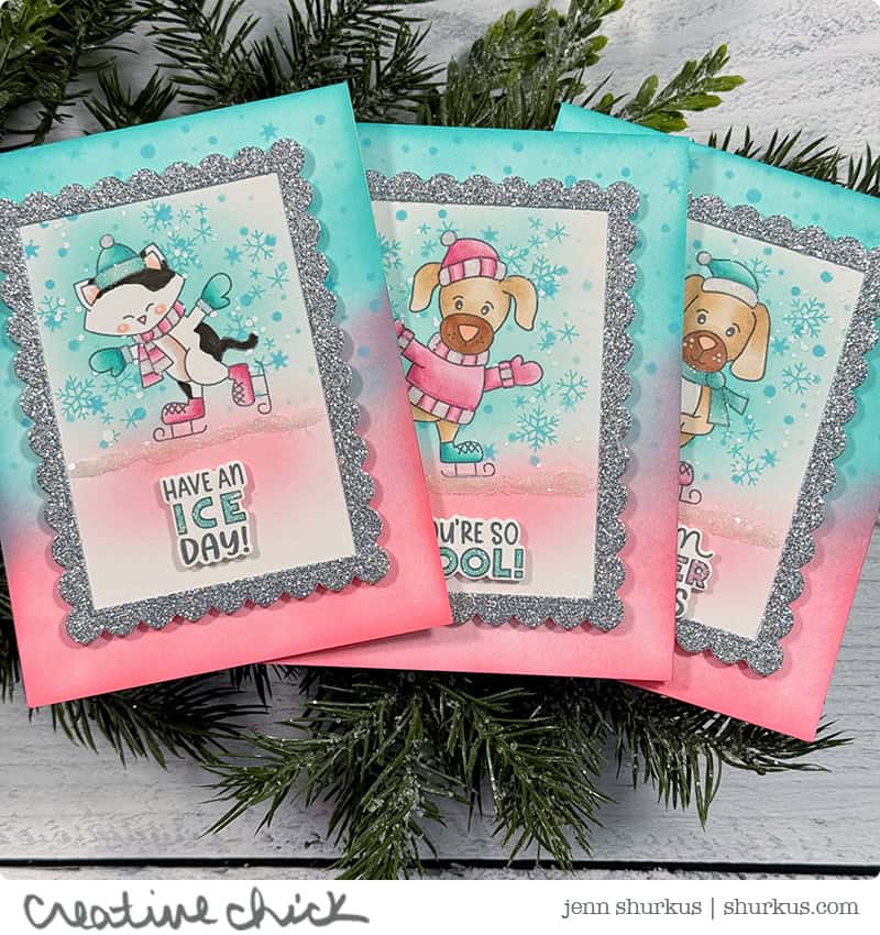 I usually don’t like to create too many of the exact same cards, I get bored too easily! But once I land on a design or technique I love, I don’t mind making a few variations. That’s exactly what I did here, so I could showcase each of the adorable animals included in this stamp set.