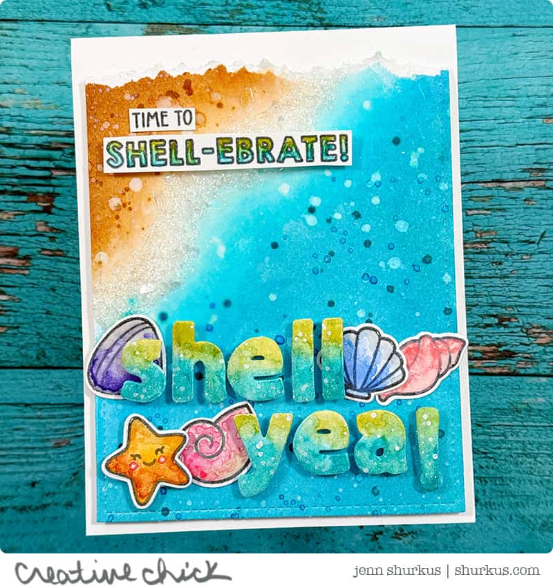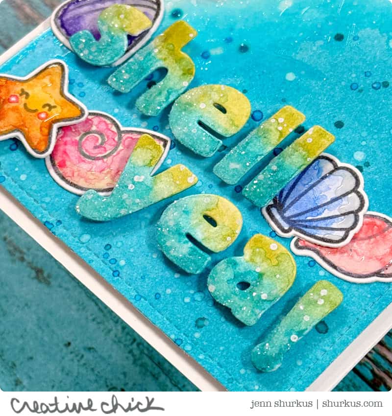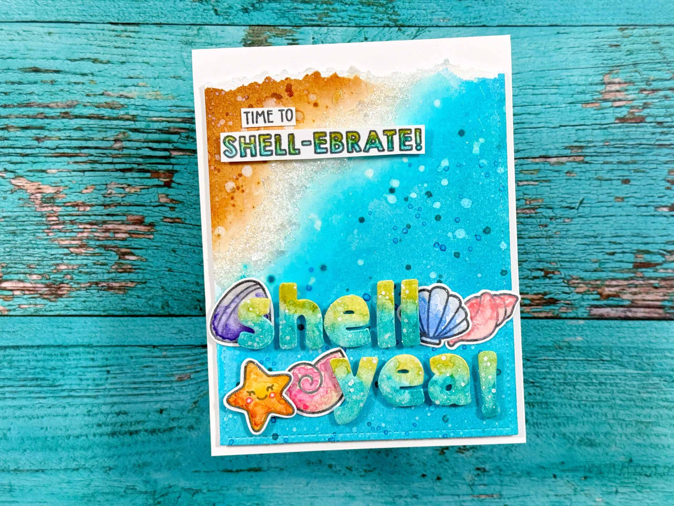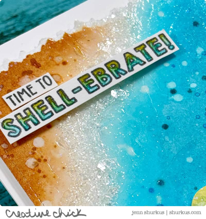 To celebrate, I created an ocean inspired card using both of the new supplies, be sure to check out the reel I’m sharing over on Instagram and Facebook to see a close up of the sparkle!