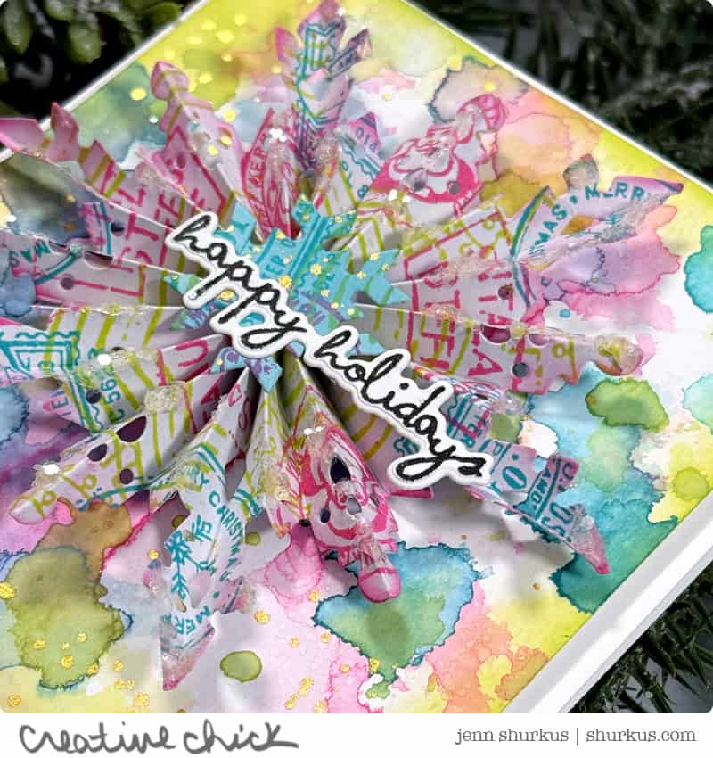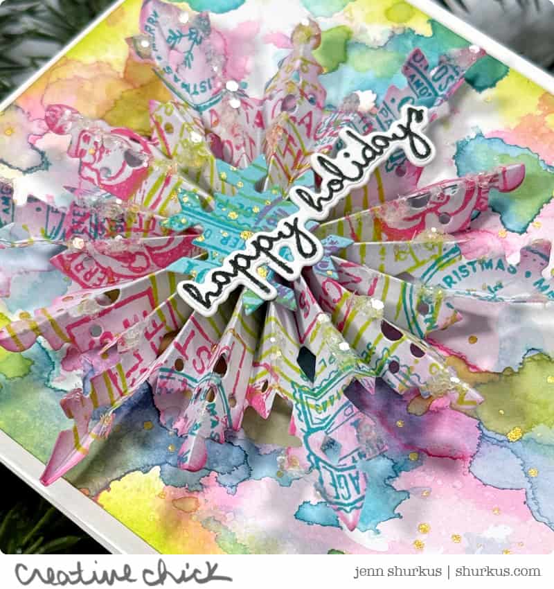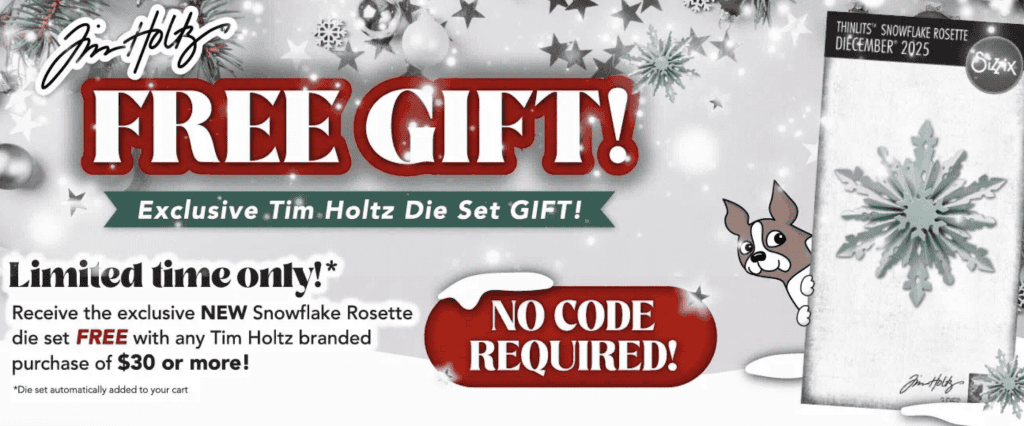 Hey everyone! Today, I am sharing a fun card I created with an exclusive Tim Holtz/Sizzix die that is only available for a limited time from Simon Says Stamp. The Snowflake Rosette die set is FREE with a Tim Holtz branded purchase of $30 or more! (while supplies last)
