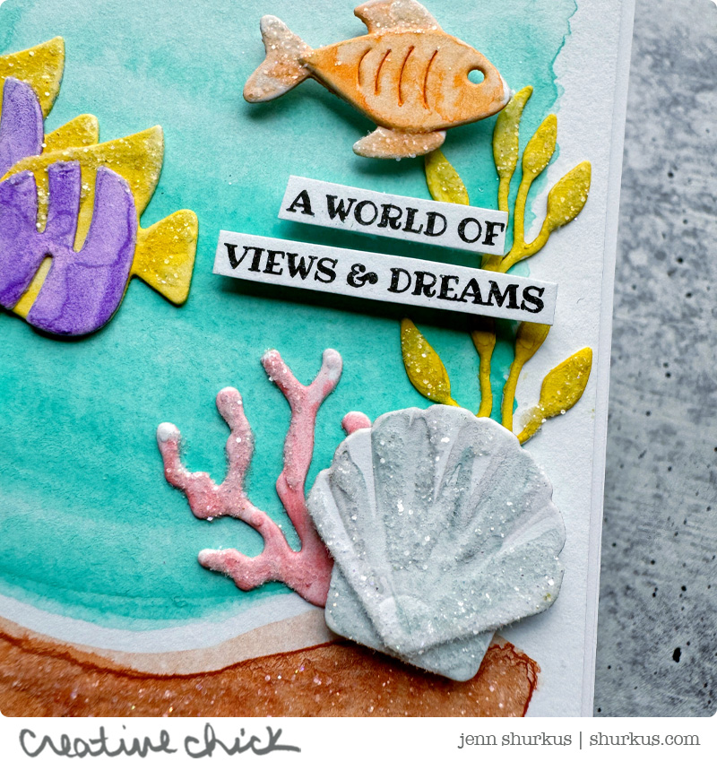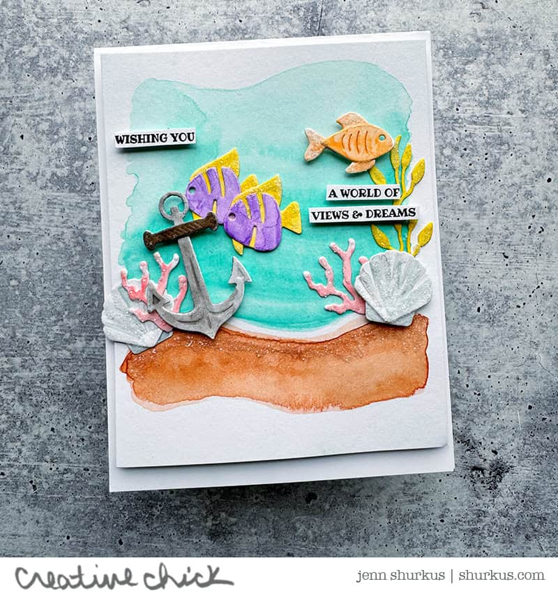 You know I always love to share ocean-inspired cards, and these two make my mermaid heart so happy! There’s just something about an underwater scene that never gets old for me, the layers, the textures, the little details. These cards were such a fun project from start to finish.