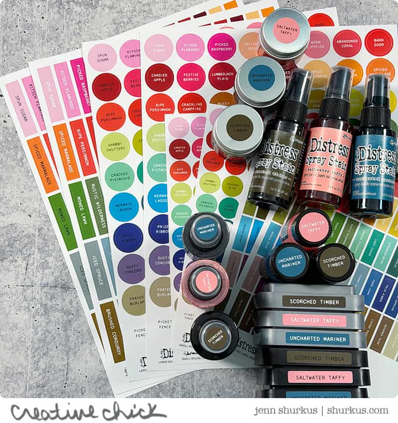 As we head into the new year, it’s finally time to finish organizing my studio, and decorate it with all the fun, inspiring art I’ve collected and created over the years. I can’t wait to share the space with you once it’s all done! Perfect timing too… Ranger and Tim Holtz just released amazing new labels for all things Distress, and I had to start using them right away (see below!). I’m excited to dive back in and finish it all up after the holidays.