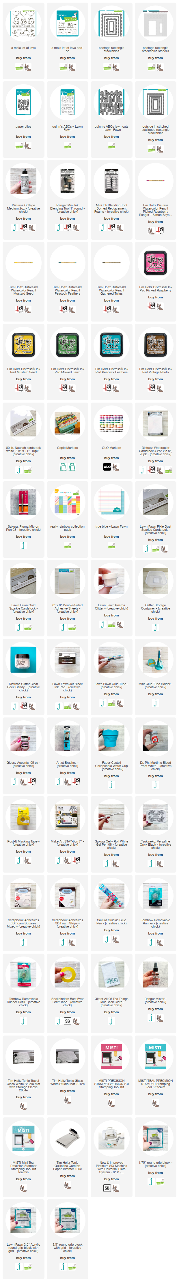 Jenn does not ship kits for this class, so there are some supplies you should have on hand. Jenn will also provide images of what should be stamped and die-cut before class on the class resource page. If you are looking to purchase ANY of these supplies, Jenn provides a list of stores and links where you can find these products. You can find this list of stores and links to their shops and online shops here.