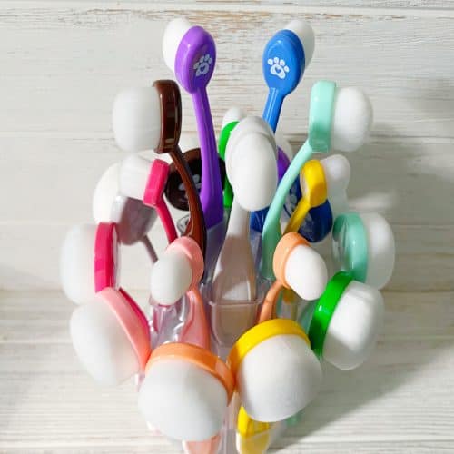 Love this brush holder. Must have holder for your blender brushes. It holds 20 brushes and hardly takes up any desk space. Love Jenn’s tip on purchasing a lazy susan-added bonus.