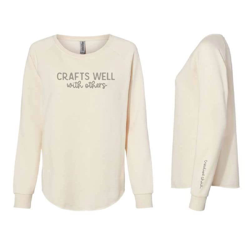 This sweatshirt is a classic fit with Raglan sleeves, with professionally printed/heat sealed matte white lettering. Fit: Classic fit. This is relaxed fit and most people get their normal size. Care: Machine wash cold separately or with like colors. Hang dry. Color is meant to fade with each wash. Fabric: 52/48 ring-spun cotton/polyester blend 3-end fleece.