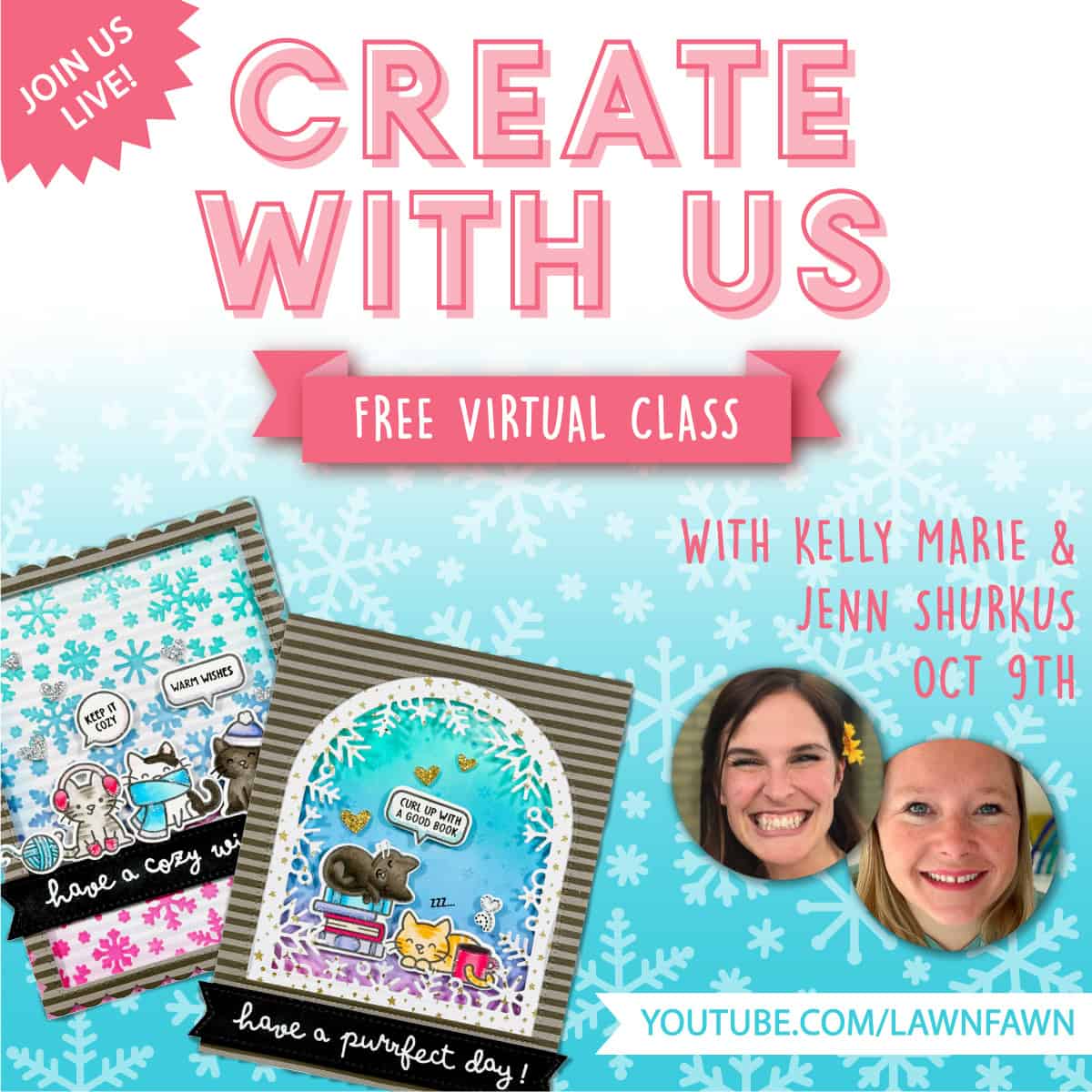 This is a free online mini-class hosted by Kelly Marie and Jenn on Lawn Fawn’s YouTube channel