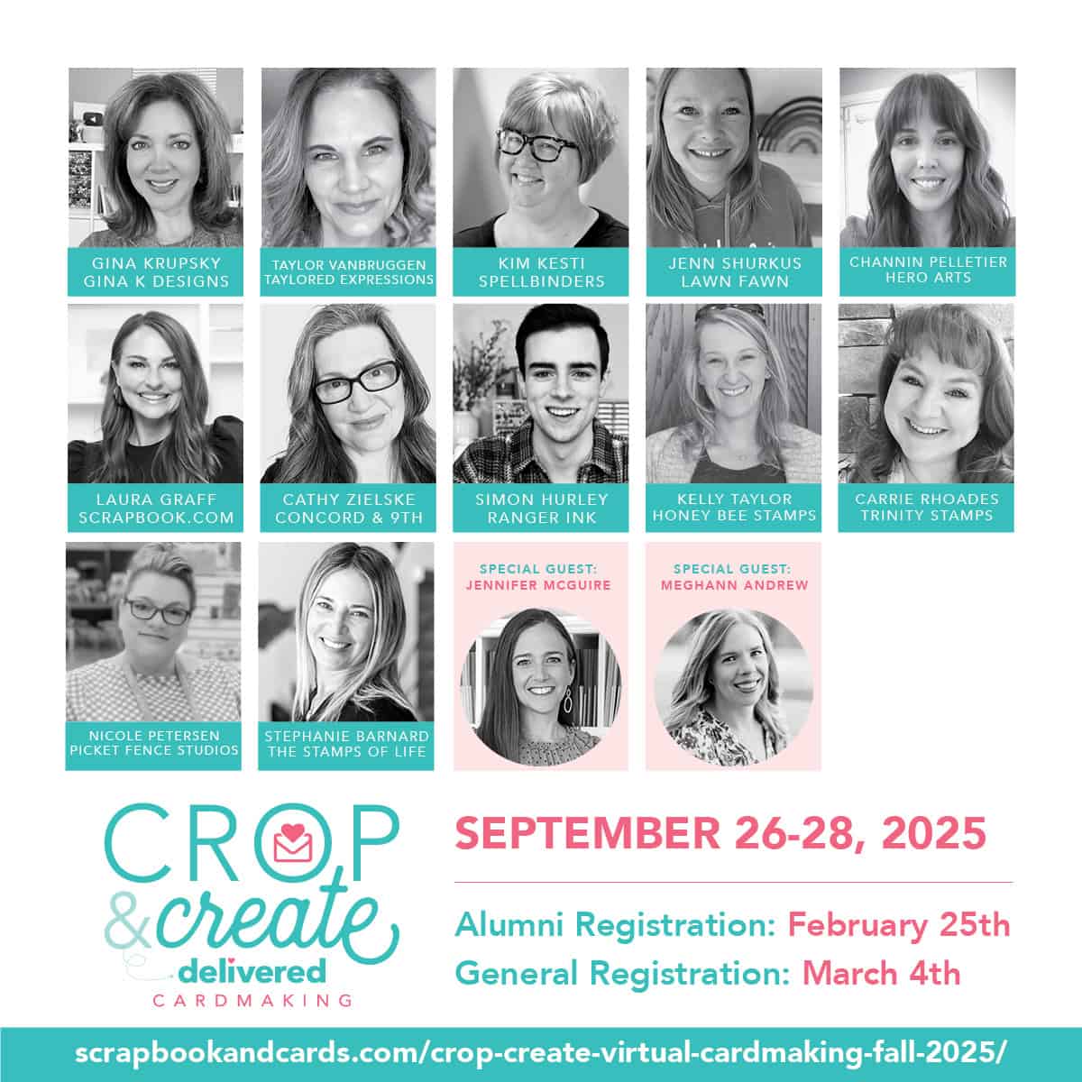 Are you ready to join us for THE premier cardmaking party of the year? A creative weekend that brings together many top stamp companies and a fantastic community of crafters? Please join us for Crop & Create Delivered CARDMAKING event! Learn, create, and be inspired with us for three incredible days! Our last event had 3350 attendees from 23 countries, and we are ready to do it again!