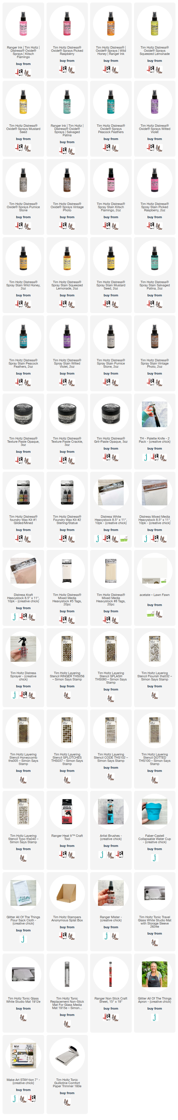 - At least 3 Distress Spray Stains and/or 3 Distress Oxide Sprays. See the specific colors Jenn will be using below, but use the colors YOU love. You can get away with just one kind of Distress spray, Jenn will be comparing and showing techniques with both, you can always purchase some after class and practice the techniques if you like what is shown in class.
