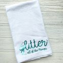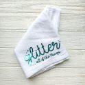 Use these custom Flour Sack Cloths while creating in your crafty space. Jenn uses them to clean off her inky hands, and table space. She also uses them to wipe off stencils etc. She always has one draped on her lap for easy access.