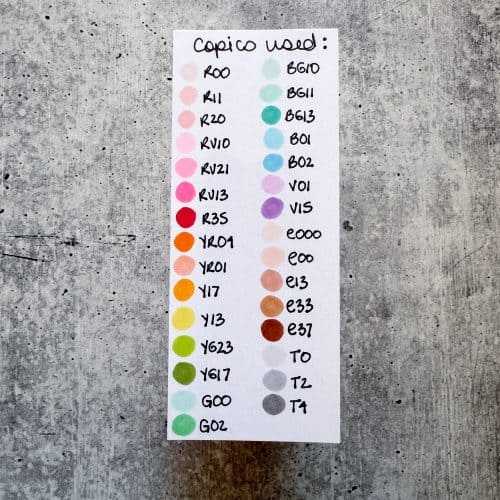 - Coloring medium of choice Jenn will be using Copic Markers (see list below and swatches)