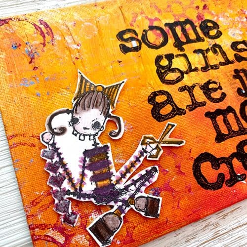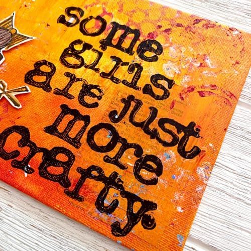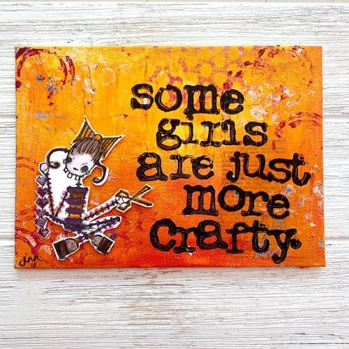 Original mixed media painting created by Jenn on canvas board, created using acrylic paint, unique paper material, stamps, and other fun supplies.