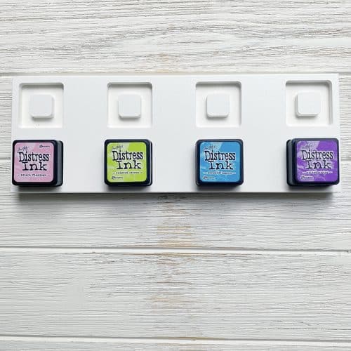 The Ink Stand was made to keep the ink on your project and off of your fingers. The Ink Stand Mini was made to fit mini ink cubes from various companies. Rubber feet on the bottom are non-slip. These are made to fit 4 mini ink pads with lids.