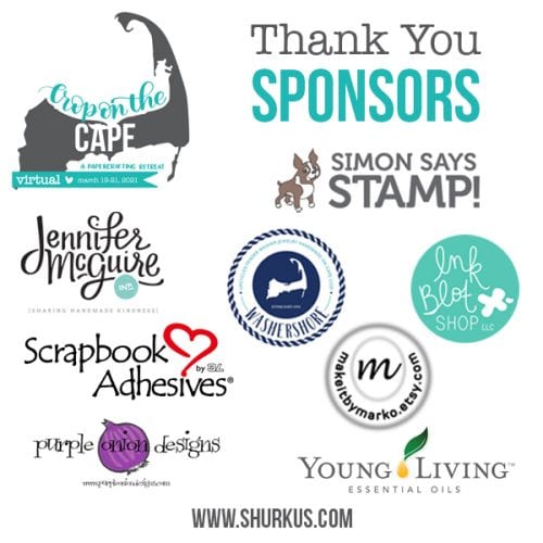 I’ve taken 5 classes with Jenn. I highly recommend her classes, including Crop On The Cape. It was so much fun plus we made so many cards over the weekend. I recommend waiting to open your box with everyone on Friday evening. There was so much excitement while we all opened our boxes together to see our Sponsor & Jenn surprises! Make sure you do your “prep” work ahead of time because you’ll use those throughout the weekend with the Sponsors.