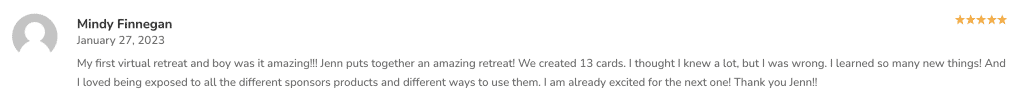 - The retreat takes place via private YouTube videos, where I’ll guide you through a series of cardmaking sessions.