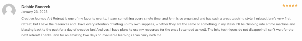 I’ve been teaching papercrafting for 20+ years and hosting art retreats for a decade, and I pour my heart into making this event an amazing experience! Whether you love playing with paper, want to learn new techniques, need a creative boost, or just want some me time, this retreat is for YOU!
