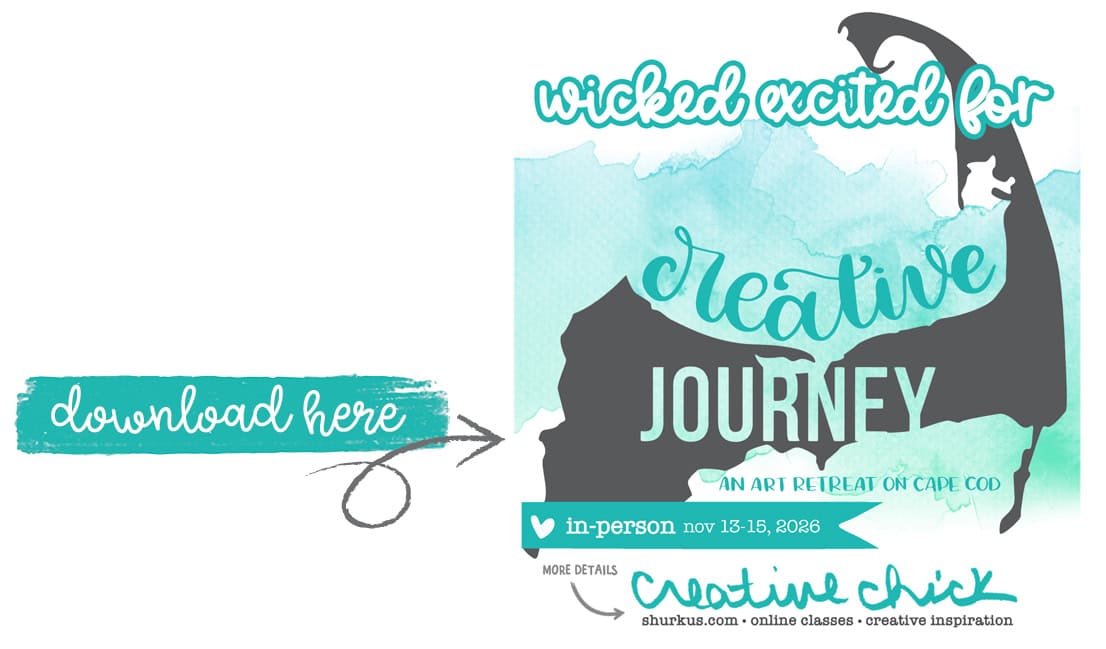 If you are attending and would like to share your excitement on social media, feel free to download this image and share it on Instagram, Facebook, etc. You can tag @jennshurkus and use #CreativeJourneyCapeCod #CreativeChickClasses
